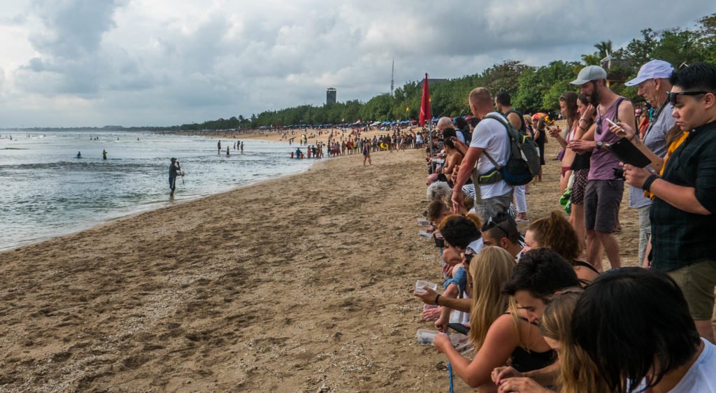 Järgmisel päeval üritame pisutki vähendada seda ökokahju, mida meie enesekeskne rändav eluviis loodusele laiemas mastaabis põhjustab. Annetame merikilpkonnade päästmisele pühendunud organisatsioonile Bali Sea Turtle Society ja saame selle eest õiguse ühepäevaseid kilpkonnabeebisid merre lasta. Iga päev aidatakse niimoodi oma loomulikku keskkonda eelmisel päeval (või üle-eelmisel, kui maimukesed on liiga nõrgad) munast koorunud kilpkonni, kes siis 60 tundi järjest ujuvad, enne kui tühi kõht sunnib neid süüa otsima.