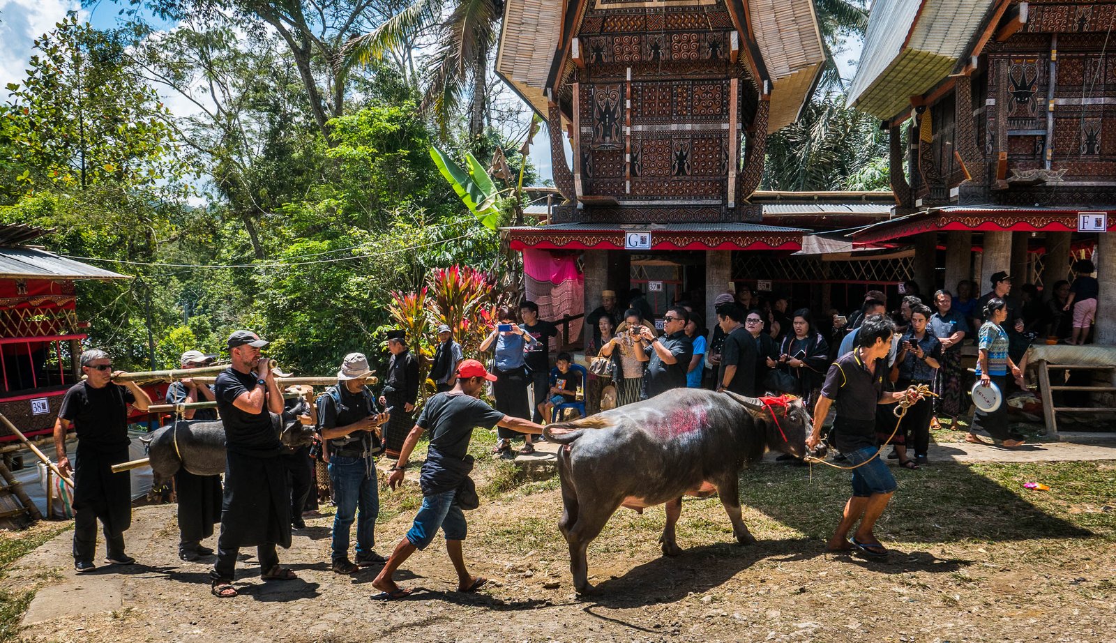Matusteks ehitatakse külalistele spetsiaalsed ajutised varjualused, varutakse suurel hulgal toitu ja jooki ning mis kõige tähtsam – soetatakse ohverdamiseks vesipühvlid. Üliku matustel ohverdatakse 24–30 pühvlit, vaese inimese puhul võidakse piirduda ka ühega. Kõige kallim on valge või valgete laikudega pühvel, mis võib maksta 25 000 – 50 000 eurot, tavalise musta vesipühvli eest tuleb Torajas välja käia u 1300 eurot. Seega võivad matused lõppeda ka pankrotiga, aga see pole kindlasti nii hirmus kui rahulolematu esivanem.