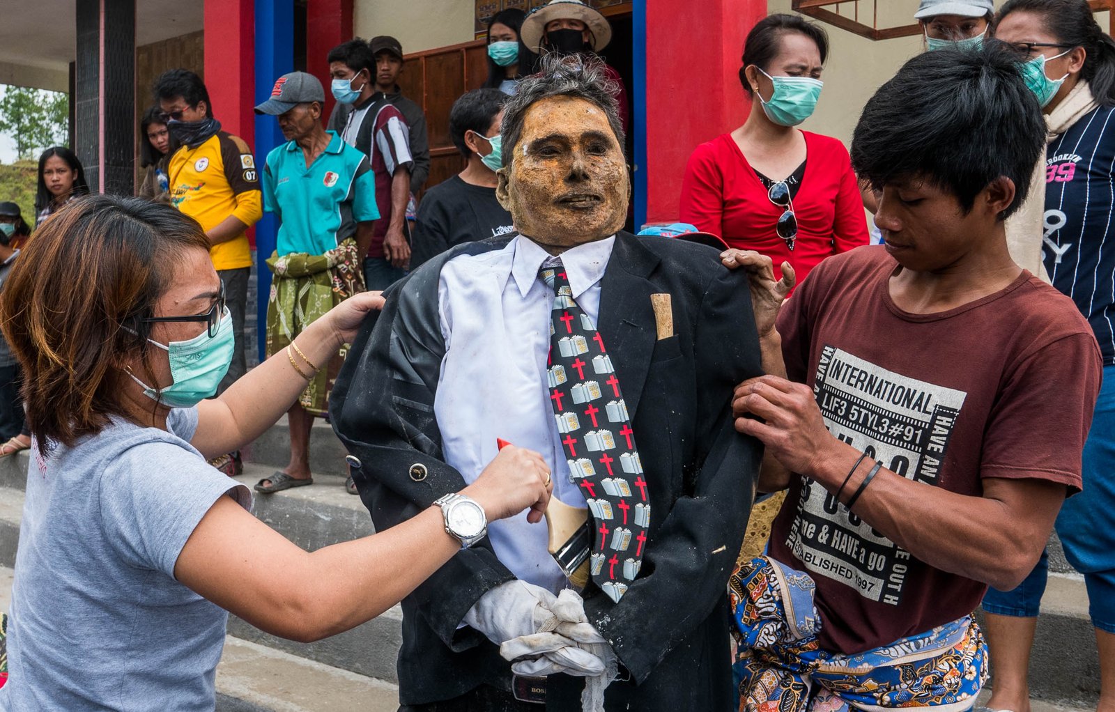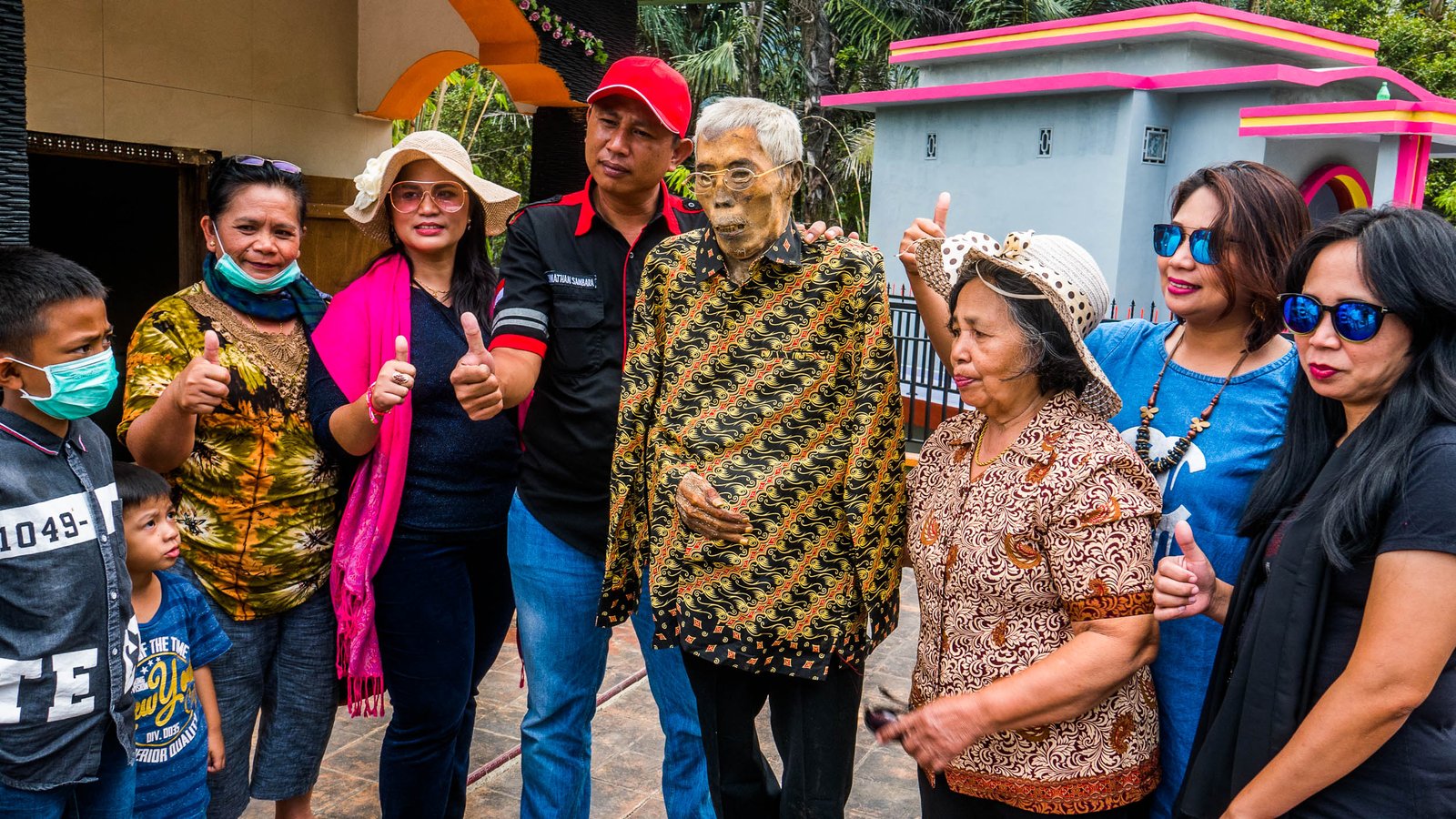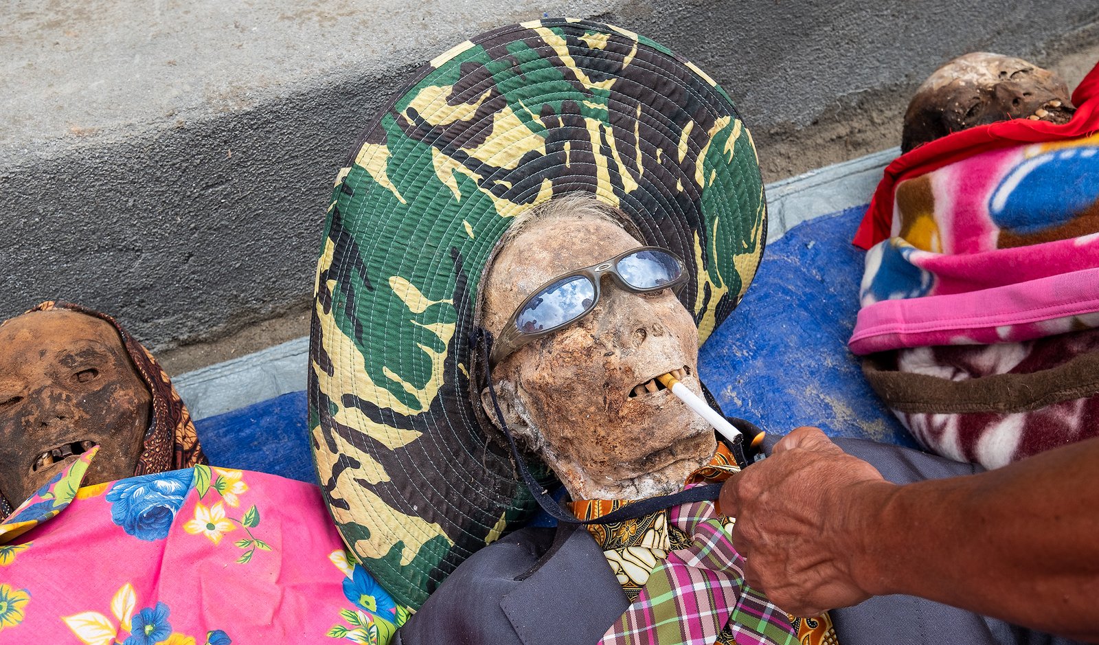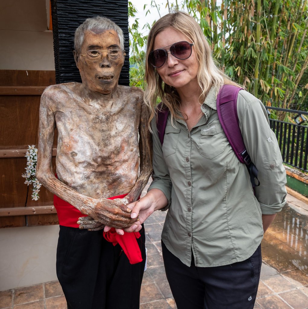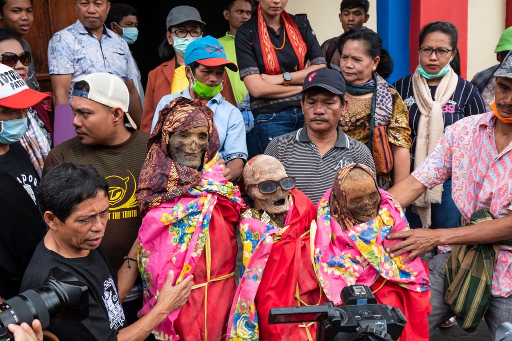 Esivanemad puhastatakse rituaali käigus ära, pannakse selga uued riided ja vahel minnakse koos ka küla vahele kõndima. Meie seda viimast ei näe, kolmes eri kohas, kuhu giid meid viib, alustatakse alles puhastamisega. Küll käib tseremoonia juurde rohke poseerimine ja pildistamine.