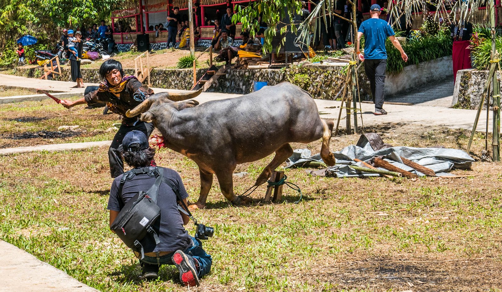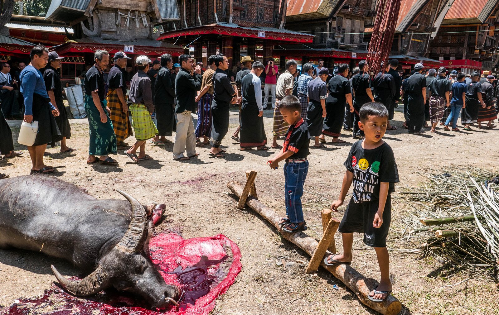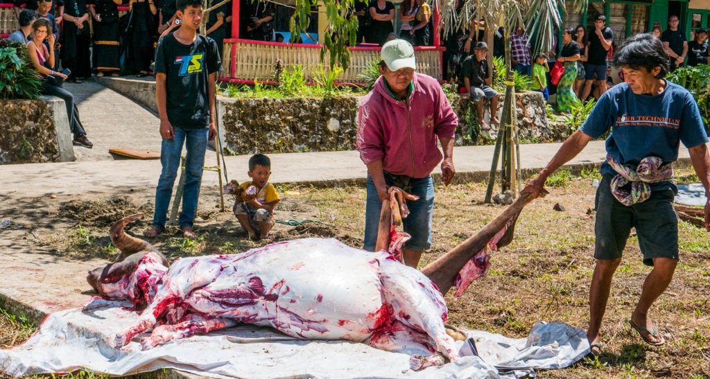 Gongilöökide saatel saab temast seejärel ametlikult surnu ja omastele võib kaastunnet avaldada. Järgneb vesipühvli ohverdamine ning selle kiire nülgimine ja tükeldamine.