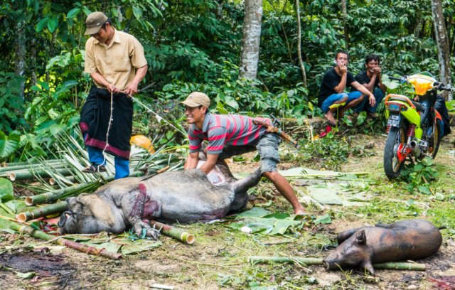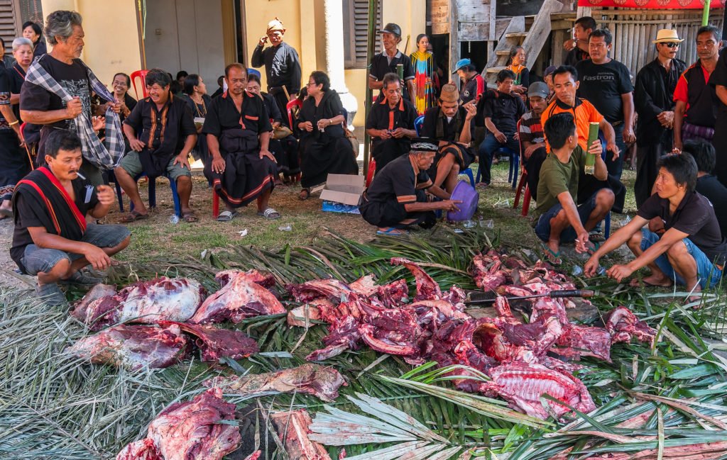 Suur pühvlite ohverdamine toimub eraldi päeval. Liha jagatakse kolmeks: osa jääb perekonda, osa kingitakse matusel käinud külalistele (lihatükk valitakse vastavalt kellegi positsioonile kogukonnas) ja osa läheb neile kogukonna liikmetele, kes halvasti toime tulevad.