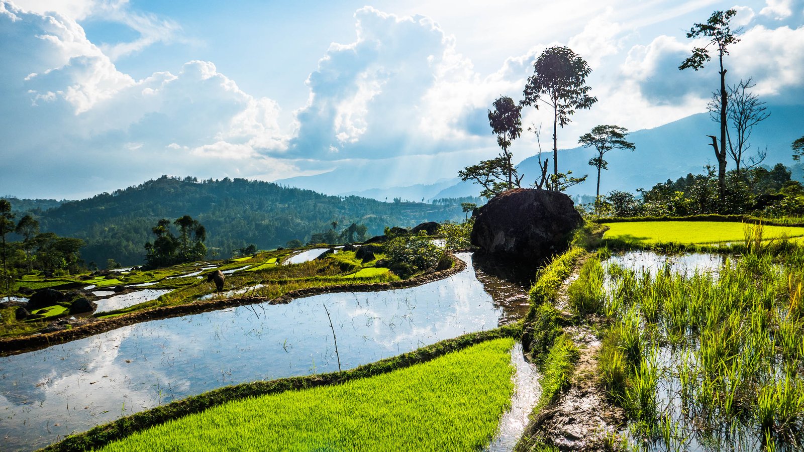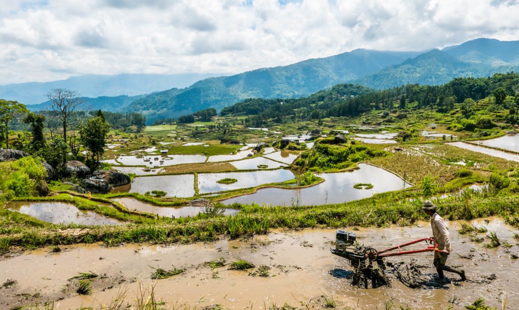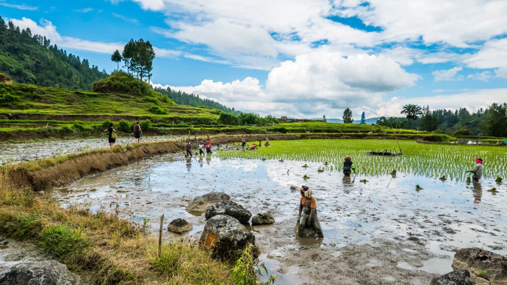 Täiesti viisakas kruusatee! Meile teeb nalja alumine silt.Ka uus poolautomaatne 125 cm³ roller ei jaksa meid mõnest eriti järsust tõusust või sügavast august üles vedada, kui valime kogemata tee, mida isegi kohalikud väldivad. Õnneks on see nüüd seljataga.Ees on aga maastikud, kuhu silm kauemaks puhkama jääb.Vaade kiviga paremal.Vaade kiviga vasakul.Vaade mehe ja tema pühvliga all paremas nurgas.Vaade mehe ja tema masinaga all paremas nurgas. Pühvlitega maad ei harita, neil on Torajas auväärsem roll.Äsja koristatud riisisaak võtab maja ees päikest.Pärast seda eraldatakse terad sõkaldest.Teisal tambitakse mutta juba uusi istikuid.
