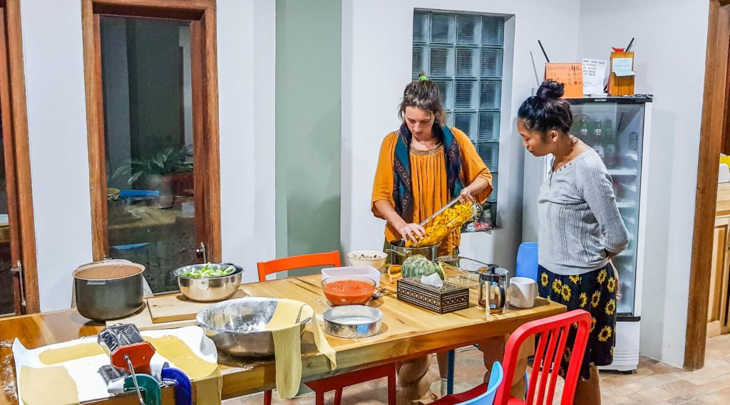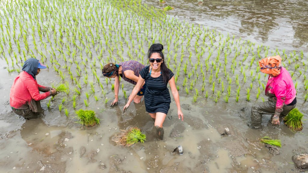 Oleme meie öömaja perenaise Sara kodukülas, Rantepaost kahe tunni autosõidu kaugusel mägedes. Ta kutsus meid, kaht eestlast ja kaht prantslannat, kes me koos tema kodumajutuses peatume, endaga siia kaasa. Sara juurde sattumine on lotovõit!Daamid põlvini mudas ehk prantslanna Lily (taga keskel) kasutab juhust ja palub külanaistel endale riisi istutamist õpetada. Sarale ja ka teistele kohalikele teeb see palju nalja.Külanaine kohvi noppimas. Hollandlased tõid 19. sajandi keskel Torajasse kohvipõõsad. Nüüd kasvavad siin ühed maailma kõige hinnatumad kohvisordid. Ka Sara perel on väike kohviistandus.Saame teada, kuidas kohvioad marjast välja muljutakse. Seejärel nopitakse hoolega kokku ja vaadatakse üle iga uba. Kohv on ikka liiga odav …Kas tulevased kohvikasvatajad või hoopis linnapreilid?Rantepao tänavatel heljuvad sageli kohviröstimise aroomid. Kohalikud armastavad tumedat rösti ja väga peent jahvatust.Ka kohvipoes nimega Jak röstitakse ja jahvatatakse kohv kohapeal. Satume ainsate külalistena ajaloohuvilise omanikuga nii põnevasse vestlusse, et lahkume alles kolm tundi hiljem.Muu hulgas saame mekkida ka kohvimarjadest (ehk kuivatatud kestast, mis ubade ümber) tehtud teed cascara‘t. Väga meeldiv veidi puuviljane jook!Külades ringi tiirutades näeme, kuidas ehitatakse uut tongkonan‘i.Eriti auväärne kodu — pikk madu pühvli pea kohal tähistab sõjamehe maja.Piilume ühte ka sisse. Kahel pool otstes on väiksed toad magamiseks mõeldud lavatsiga, keskel elutuba. Perenaine, kes meid sisse meelitas, hoiab seal müügiks suveniire. Ehk veab järgmiste turistidega paremini.Tongkonan‘ide kõrval on Torajas ja kogu Lõuna-Sulawesil populaarsed ka naaberrahva bugis‘e majad (paremal). Varju kuuma päikese eest ilma tuppa minemata pakuvad mõlemad.Varjus meeldib ka lastele istuda, eriti kui pead kallist valgete laikudega pühvlit valvama.Lõpuks läheb aga iga loom kõige liha teed. Üks notsu on jõudnud näiteks bambustorusse küpsema ja kannab nüüd nime pa’piong. Maitsev!Veel maitsvam on meie nädalapikkune juurdevõtmislaager Sara juures. Juba kaks aastat ringi rännanud Lily uurib kohe saabudes, kas siin tohib ise süüa teha. Nii satub kokku kolm kokandushuvilist naist. Soleerib Lily ja teoksil on köögiviljalasanje. Nämm!Sara jumaldab küpsetamist ja meie ülejäänud oigame mõnust iga tema uut koogieksperimenti mekkides. Mõni õhtu juhtub olema laual magustoiduks koguni kolm kooki.Mina püüan tutvustada eestlaste toidulauda ning keeran kokku kartulisalati ja õuna-saiavormi. On kõvasti nuputamist, mida siin teha saab, kui või on hirmkallis (ega õunad kah odavad ole) ja hapu- ega rõõska koort ei leia kohalikest poodidest üldse. Õnneks avastan salati jaoks linna ainsa jogurtimargi ja magustoidu jaoks kõrgpastöriseeritud piima.Kui täita kõhtu igal õhtul nii suurtes kogustes hõrgutistega, on asjakohane teada kohalikke käitumisjuhiseid puhuks, kui see kõik enam inimese sisse ära ei mahu.Pärast on jälle põhjust turule minna.Ära pelga, väikseid lapsi me ei söö!Sara õepoeg kodukülas saab sellest kohe aru ja tuleb tutvust tegema. On alles nunnu amps!Üksteist päeva möödub nagu saja pühvliga hingedemaale lennates. Toraja jätab meiega hüvasti, kutsudes esinema üle Indoneesia kuulsa popstaari nimega Noah, ja annab ka reisisoovituse “Never quit”.Oi põrgut, see on hoopis Indoneesia sigaretifirma hüüdlause!Tõepoolest, theynever quit!
