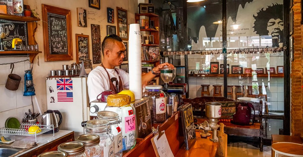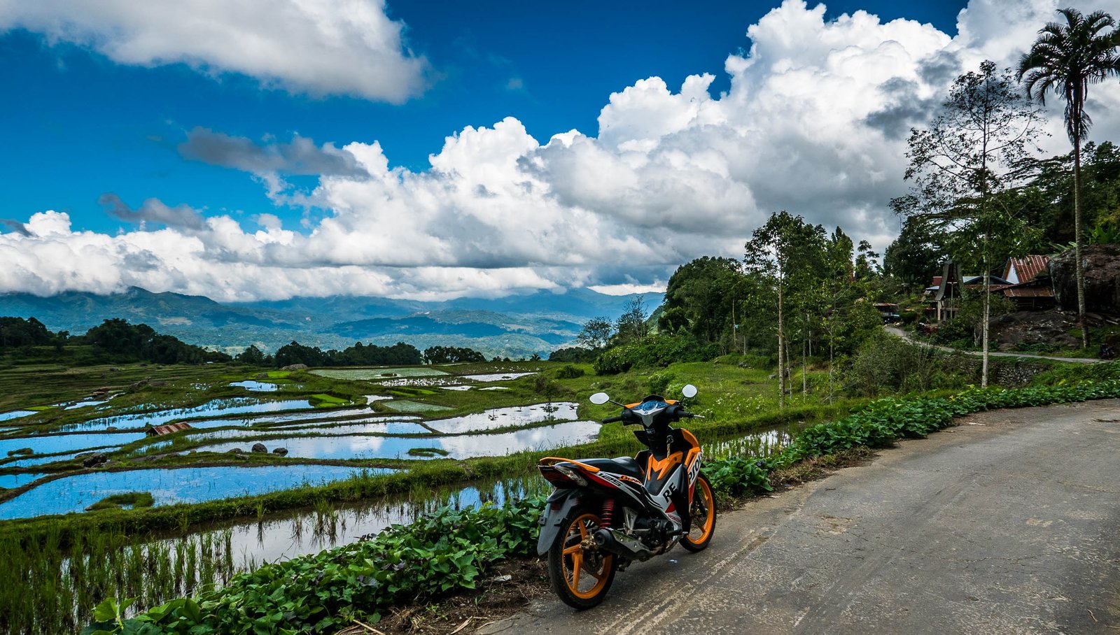 Paljudel Toraja teelõikudel vähemalt minu silmamõõdu järgi rohkem kui auto ja roller üksteisest mööduma ei mahu. Muidugi eelistame rollerit. Teed Torajas koosnevad nagu mägedes ikka kurvidest, järskudest tõusudest (800 m kõrgusel asuvast Rantepaost sõidame nt 1600 m peale) ning vahelduseks korralikule betoonkattele ärauhutud servadega asfaltteest ja seda ilustavatest löökaukudest. Saame rappuda, rollerile jalaga hoogu anda ja hullemates kohtades mahagi ronida. See-eest järsaku serval sõitmine mind enam verest välja ei vii, nii et võib lasta vaadetel end hingetuks võtta.