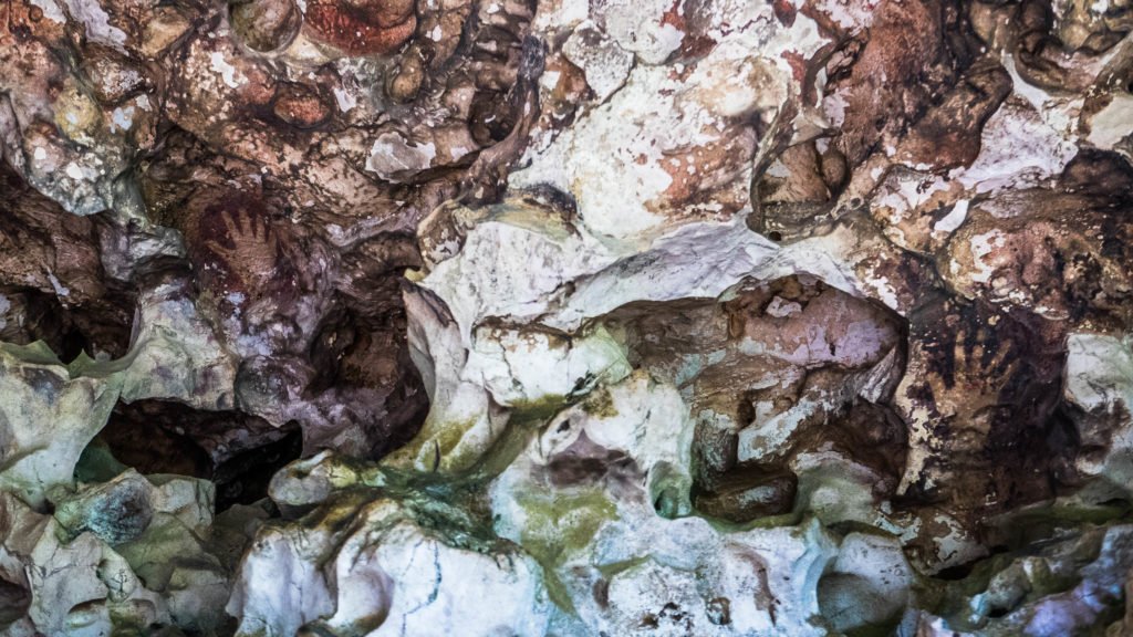 Need kaks käejälge ütlevad “Mina olin siin!”. Arvatakse, et värvi, mille päritolu jääb esialgu hämaraks, on pritsitud seinale asetatud käe ümber suuga.