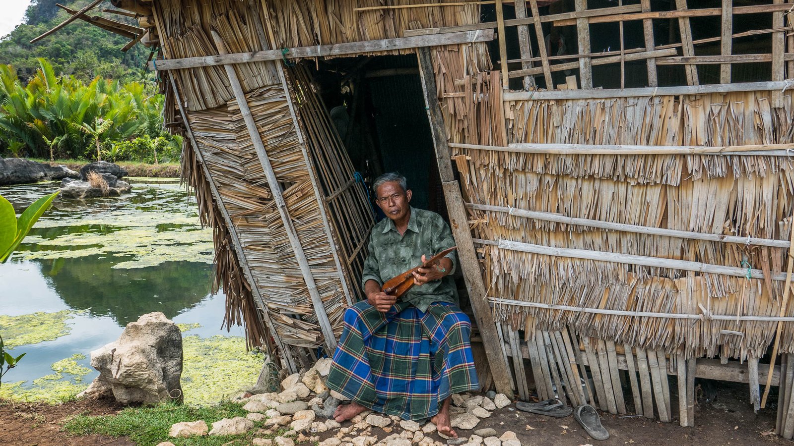 Raha on mehel tõepoolest vaja, sest tema maja hoiab kõhuli vajumast ainult bambusritv.