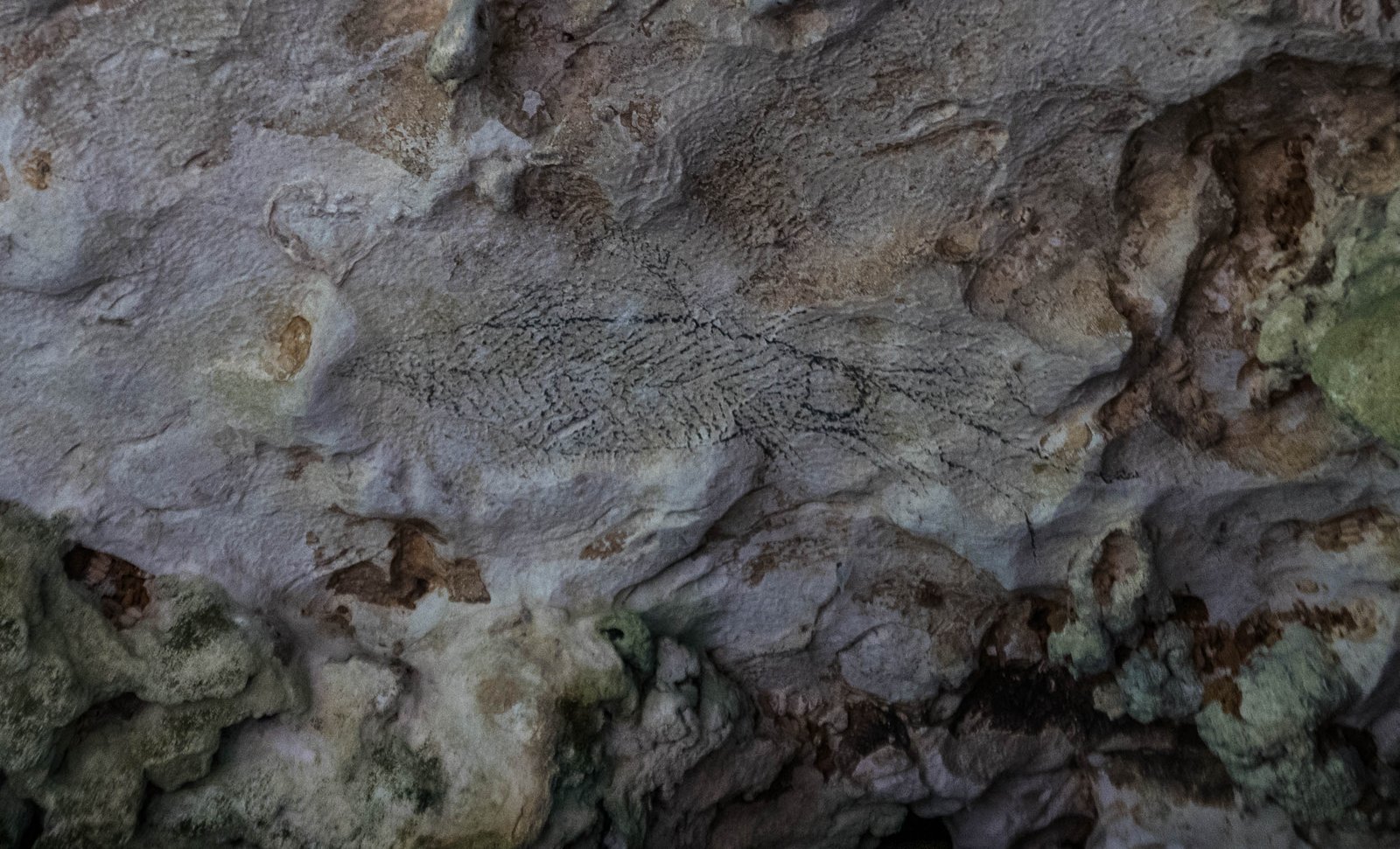 Sealsamas lähedal avastame aga midagi veel ootamatumat. Me ei taibanud esialgu pöörata tähelepanu koobastele, mida selles piirkonnas saavat külastada. Tunnistan ausalt, pärast Vietnami Paradiisi koobast ei tundu teised enam nii paeluvad. Kuni avastame teeviida “Prehistorical sites”. Leiame igast küljest karstikaljudest ümbritsetud platsi, kust viib rada koopasse. Siin elasid omal ajal inimesed, nendime pärast üles ronimist ilmselget. Siis näeme seinal käejälgi ja laes kalakujulist kritseldust. Kas keegi on nalja teinud või on see tõesti koopainimeste kunst? Käejälgede juurest leiame tähise P.6.