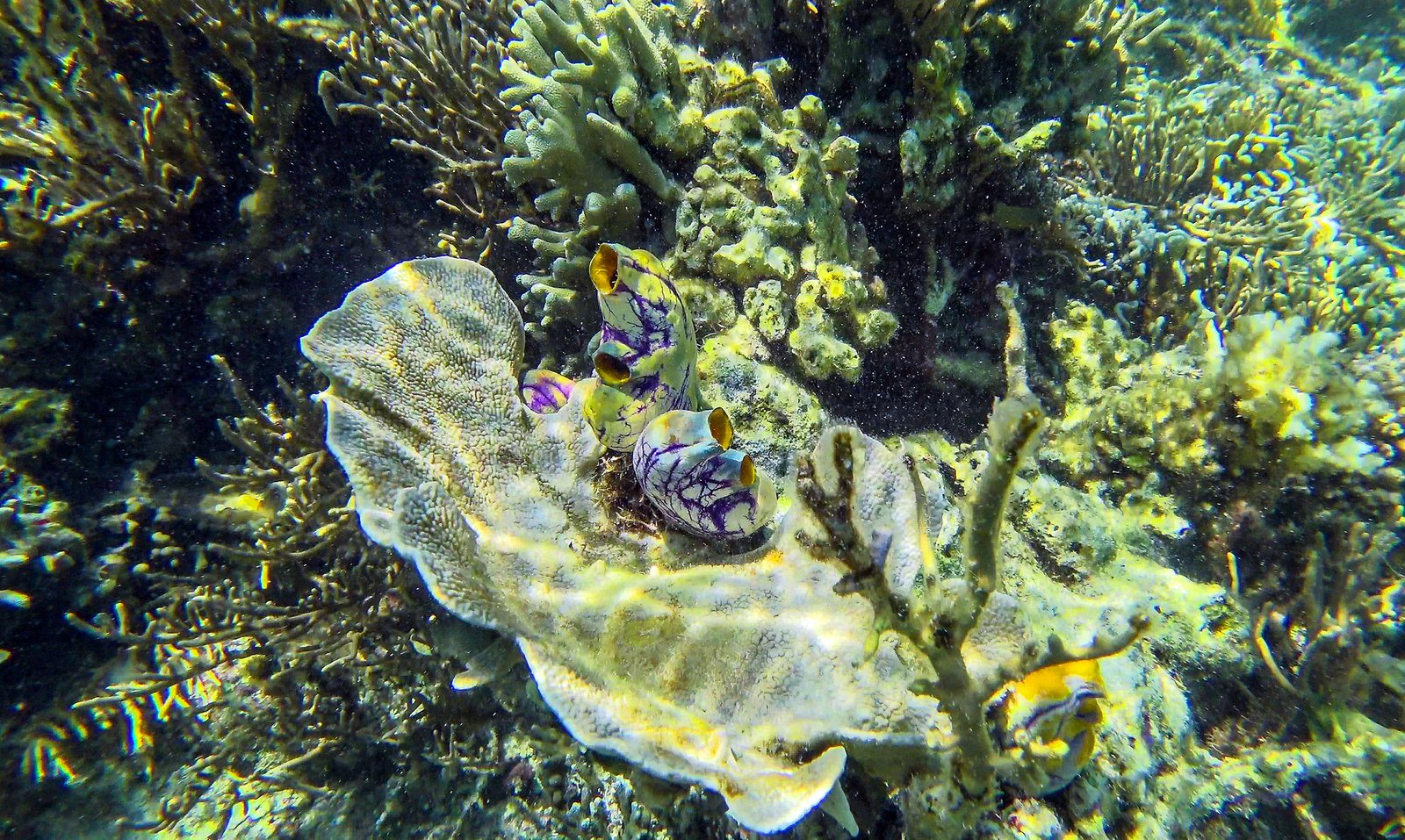 Veel paar-kolm tundi mere kündmist ja otse laevanina ette jääb saar nimega Bedil, millele saab tiiru peale teha vaid ühe minutiga. Jääme siiski kauemaks: võrkkiiges vedelema, pildistama, snorgeldama. Kuna Ahto lennutab drooni, lähen snorgeldama ilma temata. Olen juba, mask peas ja snorkel suus, koralle imetlemas, kui järsku avastan: appi, mul pole päästevesti seljas! Unustasin selle ära … Uppumisest ei tule aga midagi välja, soolane vesi hoiab mind pinnal sama hästi nagu koos vestiga, seega otsustan oma hirmust sügava vee ees üle saada ja hulbin rõõmsalt edasi.