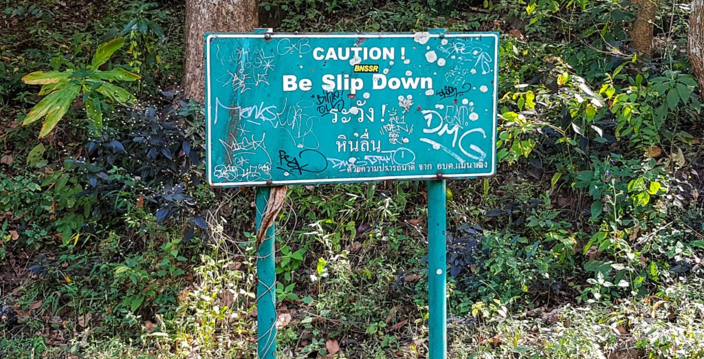 • Huvitavat inglise keelt kohtasime ka Tais. Nagu näha, on siin ohtlik. Jääd mõtlema, mida öelda tahetakse, ja libisedki alla.